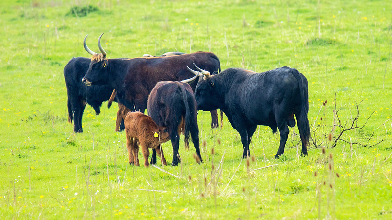 Sobald sich ein Tier zu weit von den anderen Tieren des Rudels entfernte, kam sofort der Hirsch herbei und scheuchte es wieder zurück zu den restlichen Tieren.