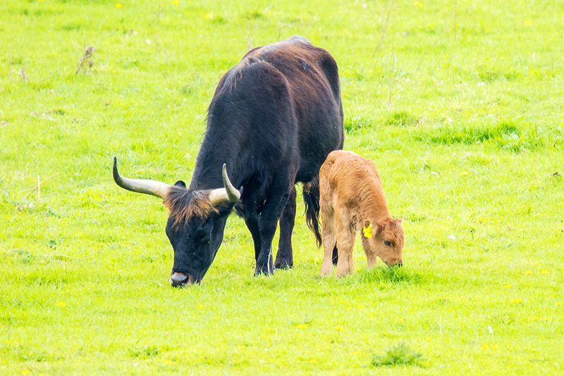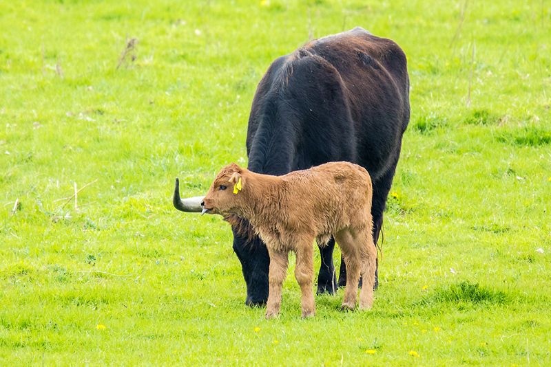 Ein dumpfes Röhren ließ mich nach etwa einer halben Stunde aufhorchen. Sofort richtete ich meine Aufmerksamkeit wieder auf die Lichtung. Mittlerweile hatte der Regen aufgehört und die Sonne bahnte sich ihren Weg durch die Wolken. Nach einem erneuten Röhren, kamen zwei Hirschkühe aus der Wiese und betraten den Weg zur Lichtung.